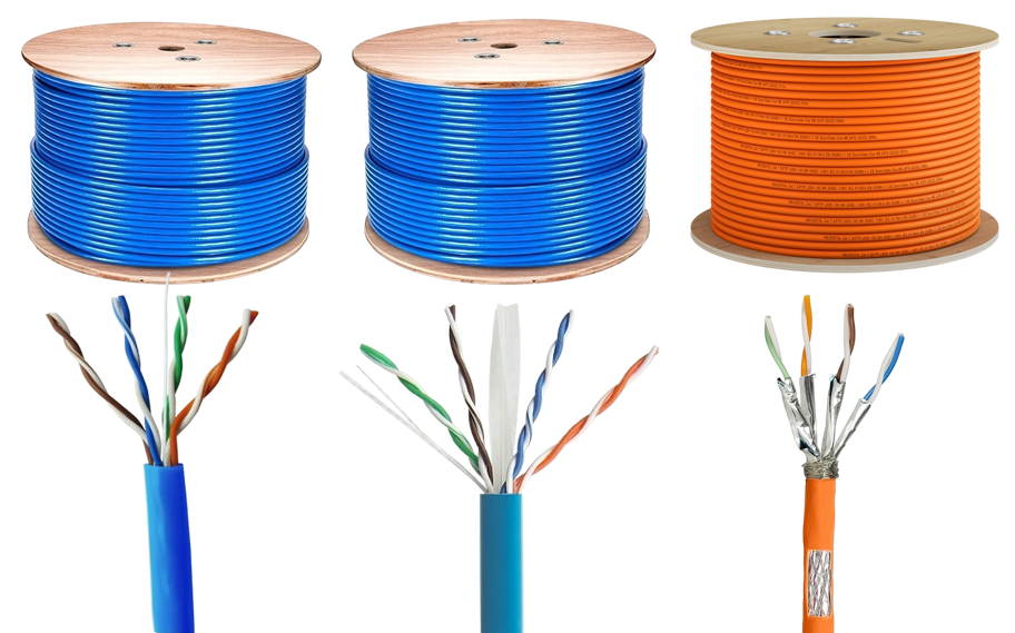 High-speed Ethernet cables for data transfer and networking. Available in CAT5E, CAT6, CAT6A, and CAT7, with shielded and unshielded options. Ideal for home, office, and industrial networking, ensuring fast and stable connections