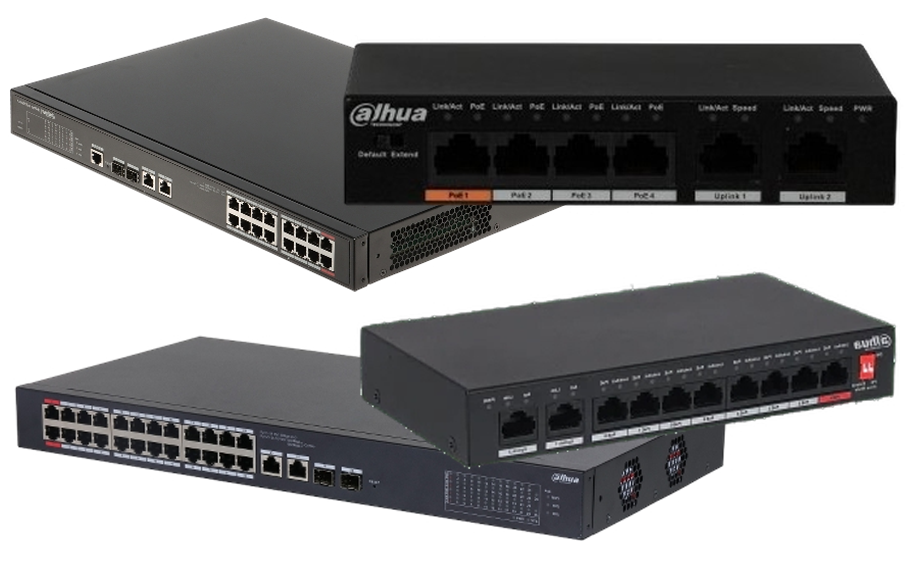 Dahua and other premium PoE switches for efficient power delivery, fast data transfer, and camera network management